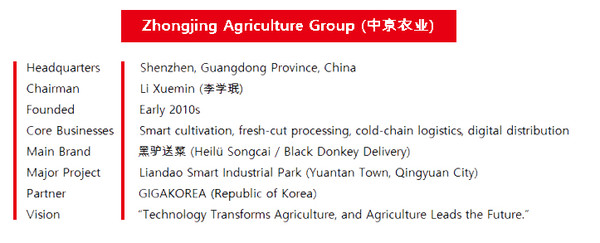 Zhongjing Agriculture is currently developing the “Liandao (链道) Smart Industrial Park” in Yuantan Town, Qingyuan City, Guangdong Province.With a total investment of 660 million RMB and an area of about 300 mu (200,000 m²), the park integrates smart greenhouses, automated processing lines, and cold chain logistics centers.It has been designated as a core pilot project of Guangdong Province’s “Digital Agriculture 2030 Vision.” On October 22, 2025, Zhongjing Agriculture officially signed a partnership agreement with Korea’s GIGAKOREA, launching joint development of AI-based distribution management and logistics automation systems. This collaboration has been recognized as a symbolic example of Korea–China cooperation in smart agriculture and distribution technology.