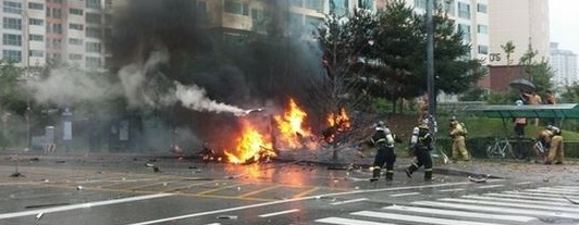 강원소방본부 소속 헬기가 광주광역시 광산구 장덕동 부영아파트 부근에서 17일 오전 10시 53분경 추락해 탑승자 전원이 사망했다.