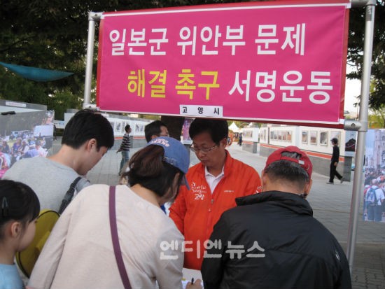 최근 미국 뉴저지주 팰리세이즈파크(팰팍)시의 위안부 기림비에 일본인의 소행으로 추정되는 ‘말뚝테러’ 가 발생하면서 국민들은 물론 한인사회의 공분을 불러일으키고 있는 가운데 국제적인 평화인권 도시를 지향하는 고양시가 지방자치 단체로는 처음으로 일본군 “성노예 피해 위안부 할머니” 들을 위한 범시민적 서명운동에 박차를 가하고 있다.