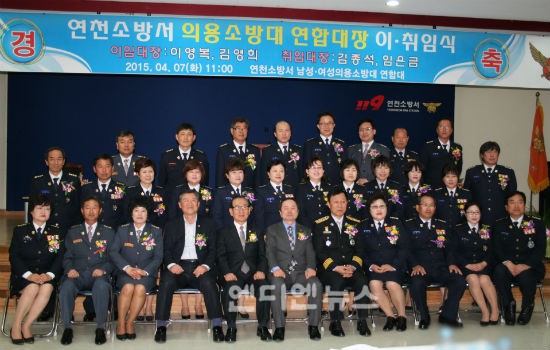【연천/엔디엔뉴스】안홍필 기자 = 연천소방서(서장 임동권)는 지난 7일 본서 3층 대회의실에서 김규선 연천군수, 김광철 도의원, 이종만 연천군의회의장, 김기백 ‧ 이미숙 경기도의용소방대 연합회장 등 내빈과 소방공무원 ․ 의용소방대원 140여명이 참석한 가운데 의용소방대 연합대장 이 ․ 취임식 행사를 개최했다.
