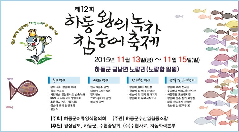 하동군어류양식업협의회가 주최하고 하동군수협이 주관하는 이번 축제는 참숭어 요리 시식회를 비롯해 활어직판장, 인기가수 공연, 체험행사 등 풍성한 이벤트로 진행된다.