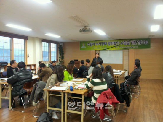 수원시 푸른녹지사업소(소장 박흥수)가 녹지정책 발전방안 수립을 위한 녹지직 공무원의 워크숍을 7일 한국청소년마을 경기도지부에서 개최했다고 11일 밝혔다.