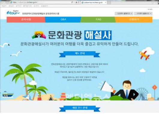 인천시는 올해 1월 1일부터 ‘문화관광해설사 예약 전용 사이트(http://culture-tour.incheon.go.kr)’를 정식 오픈하고, 운영을 시작했다고 밝혔다.