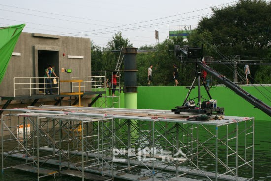 특히, 영화 ‘타워’는 고양아쿠아스튜디오에서 촬영된 첫 번째 블록버스터 영화로 스튜디오 내 대형 수조(58x24x4m)와 중형 수조(25x20x3.8m)에서 2011년 8월부터 9월까지 약 한 달 간 촬영되었다. 촬영 당시 대형수조 내에 빌딩 형태의 대형 철 구조물 세트를 설치하여, 화염 씬과 10톤 가량의 물을 한 번에 쏟아 붇는 ‘워터슬라이드’를 이용한 촬영 등 국내 어디에서도 찍을 수 없는 특수 촬영이 이루어졌다.