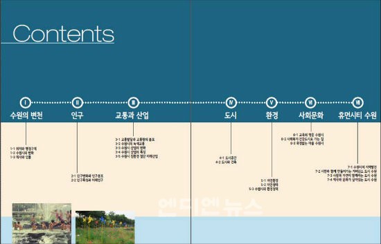 각 장을 색으로 구분하고 항의 처음에는 타임테이블을 작성해 수원의 과거․현재․미래를 한눈에 보여주며 다양한 형태의 Tip코너를 통해 흥미를 유발하고 내용을 보완하는 효과도 기한다.