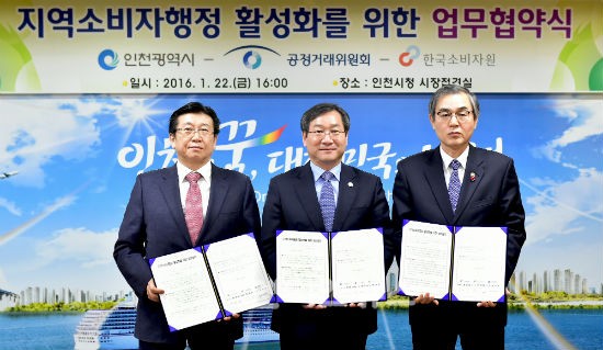 인천시는 1월 22일 시청 접견실에서 공정거래위원회, 한국소비자원과 ‘지역 소비자행정 활성화를 위한 업무협약’을 체결했다고 밝혔다.