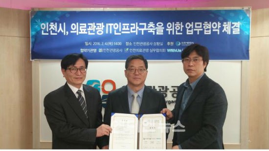 【수도권=ndnnews】안홍필 기자 = 인천광역시(시장 유정복)와 인천관광공사(사장 황준기)는 지난 4일(목) 인천광역시 인천의료관광 실무협의회(회장 김진일)와 글로벌 의료관광운영시스템을 최초 개발한 ㈜위더스(대표이사 김춘근)와 함께 인천의료관광 IT인프라 구축을 위한 업무협약을 체결하여 외국인환자유치에 꼭 필요한 환자정보관리시스템과 의료관광 상품관리시스템을 개발하여 공급할 계획이라고 밝혔다.