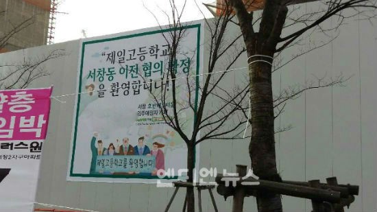 서창2지구 아파트 “신축공사장에 걸린 부평제일고 이전 확정 발표” 교육당국 확정된바 없다 밝혀!