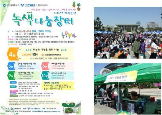 【수도권=ndnnews】안홍필 기자 = 인천광역시(시장 유정복)는 자원 절약과 나눔 문화의 확산을 위해 시가 주최하고 인천YWCA가 주관하는 『2016 자원순환 녹색 나눔장터』 첫 장터가 오는 4월 23일 오후 1시 인천종합문화예술회관 야외광장에서 개장한다고 밝혔다.