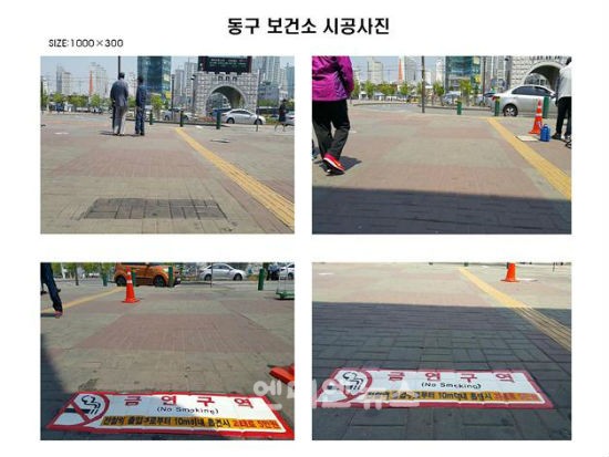 금연구역 표시는 ‘전철역 출입구로부터 10m 이내 금연구역’으로 하며, 전철역 출입구를 경계로 해 보도블럭 2~3m 거리에 노면 표지판을 제작·설치할 계획이다.